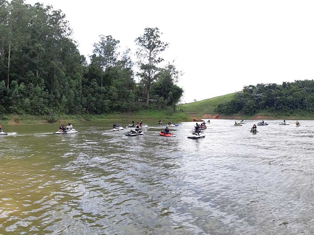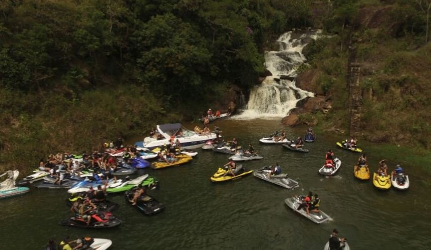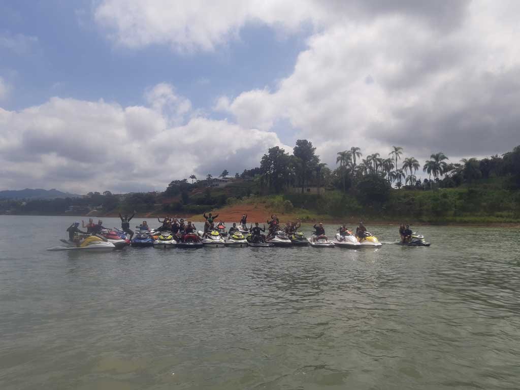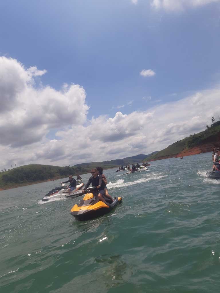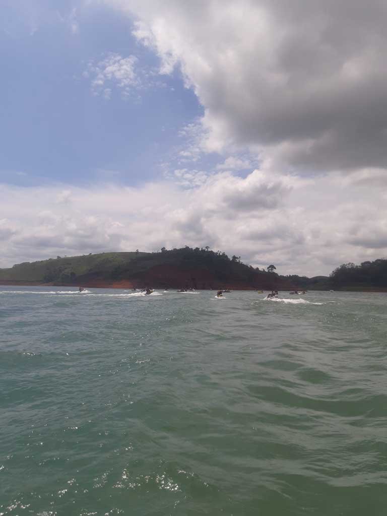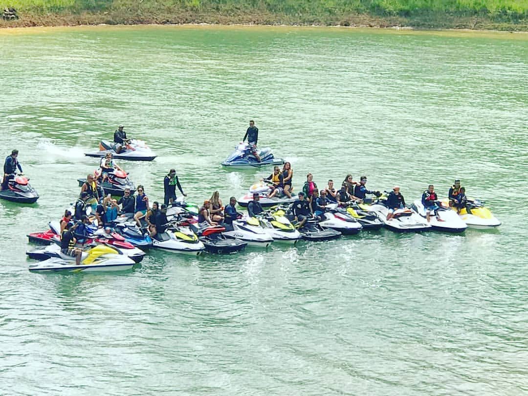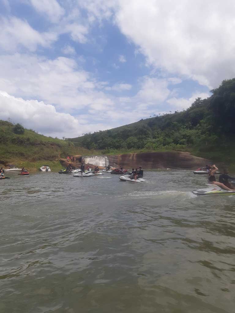 Estávamos em + ou – 25 jetski nos reunimos na água em frente a marina e com apoio do Erick do @jetnaveia fomos guiado para algumas cachoeiras da represa.