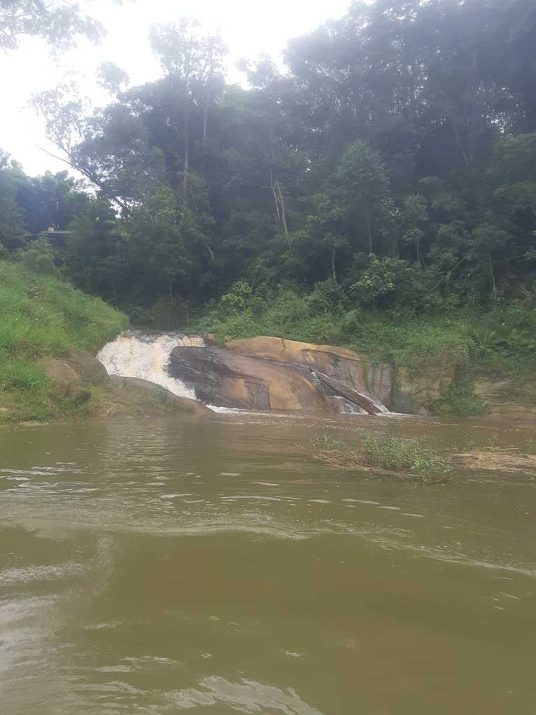 A terceira que visitamos é a cachoeira do Bumerangue Sul situada no município de Santa Isabel, tem uma boa queda d’água e seu acesso é por trilha, tentamos acessar pelo rio que chega até ela mas devido o nível da represa o rio estava muito raso e seu fundo coberto por pedras.